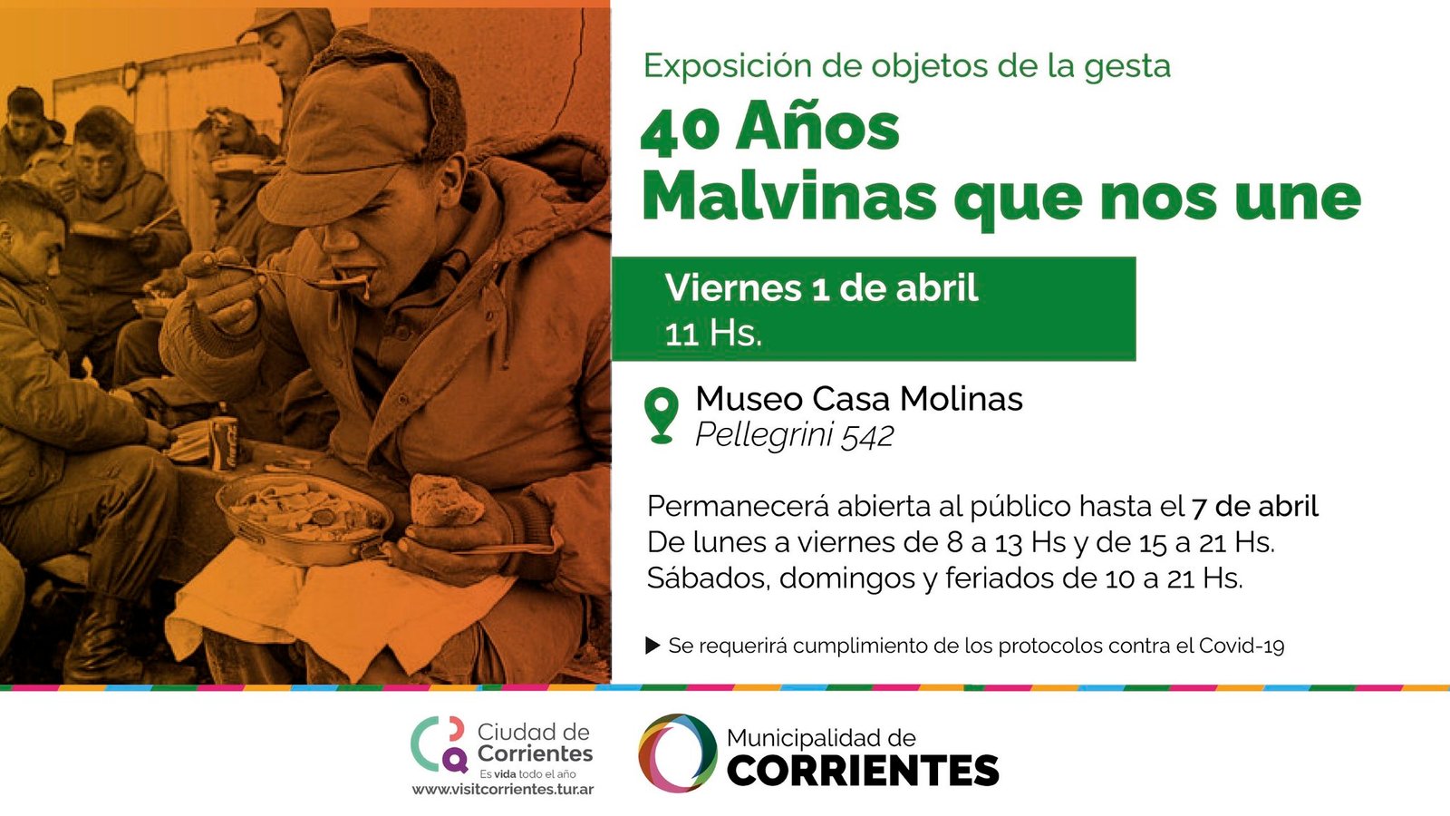 Realizaremos la exposición ’40 Años Malvinas que nos une’ en el museo Casa Molinas A partir de este viernes y hasta el 7 de abril, los vecinos podrán acercarse a disfrutar de esta muestra gratuita.