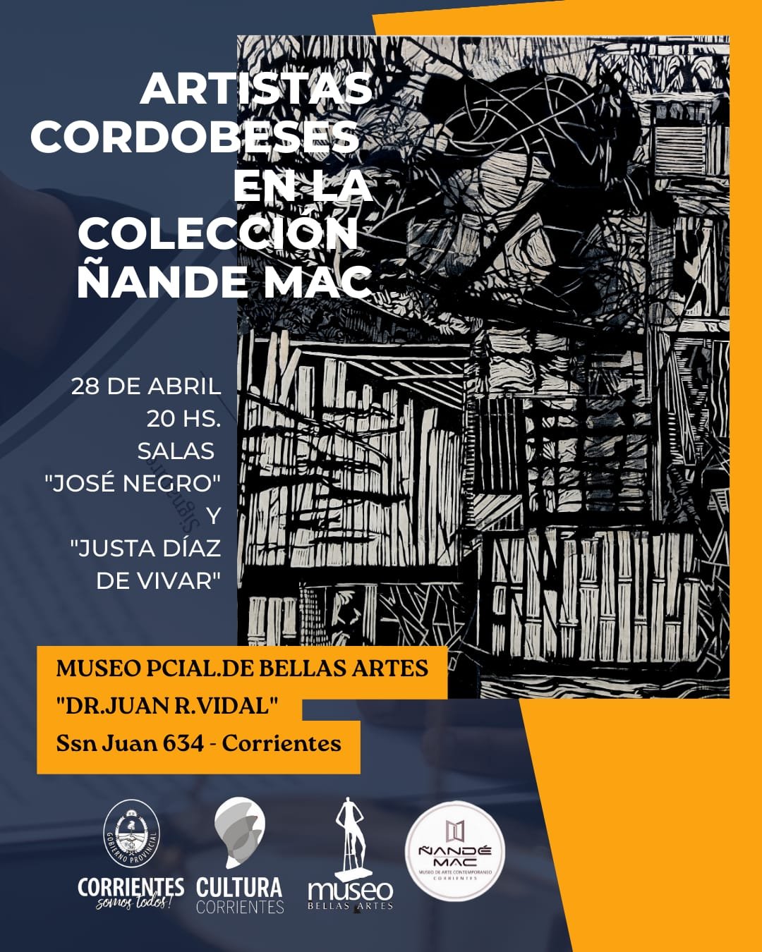 El Instituto de Cultura de Corrientes (ICC) invita a la inauguración de la muestra de artistas cordobeses en la colección Ñande MAC (Museo de Arte Contemporáneo), a realizarse este viernes a las 20 horas, en las Salas “José Negro” y “Justa Díaz de Vivar” en el Museo Provincial de Bellas Artes “Dr. Juan R. Vidal” de esta Capital.
