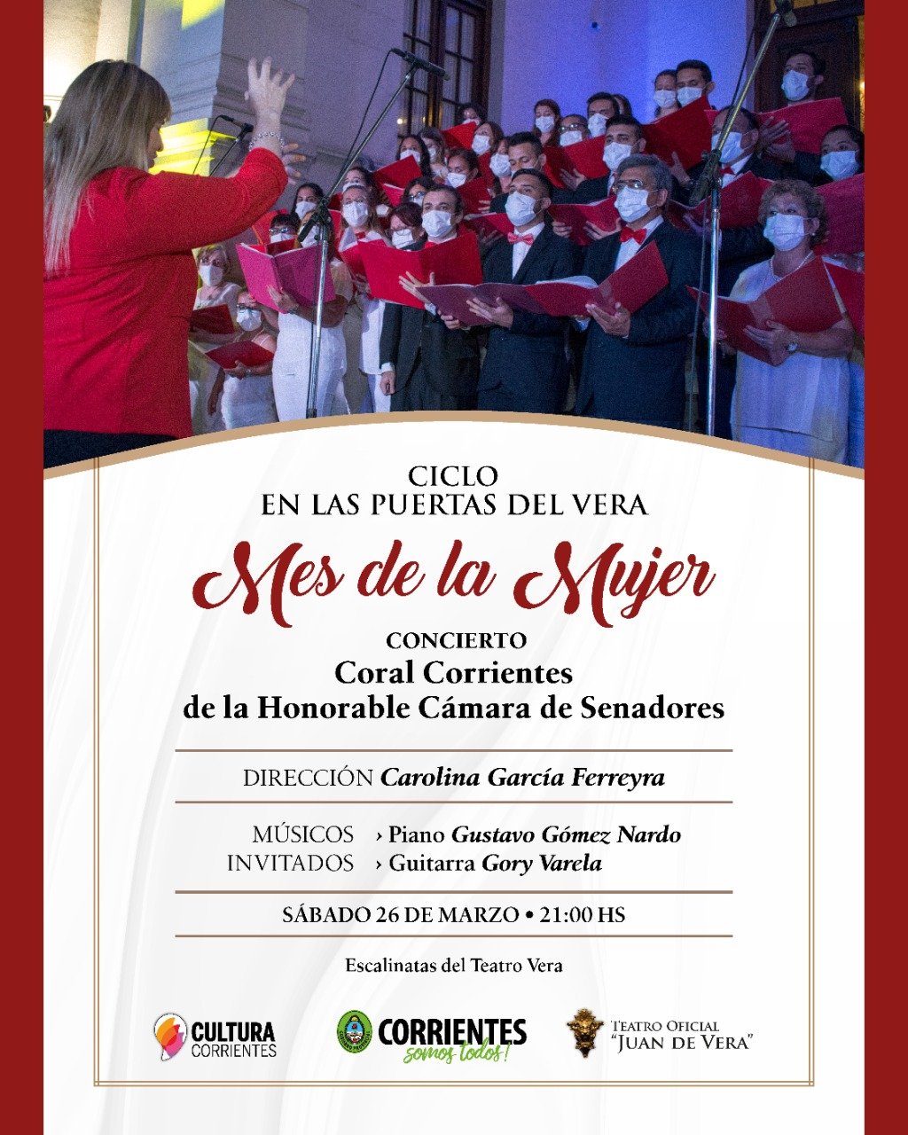 El Instituto de Cultura de Corrientes invita a la tercera presentación del Ciclo “En las Puertas del Vera”, dedicado al Mes de las Mujeres Trabajadoras, que tendrá como protagonista a Coral Corrientes. Se presentará este sábado 26 de marzo, a las 21, en las escalinatas del teatro, con acceso libre.