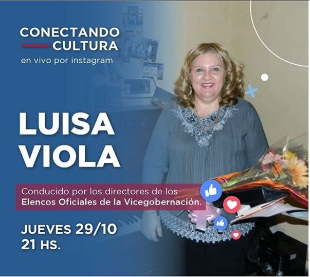 “Luisa nos contará sobre su vida en el mundo de la cultura, su trayectoria docente en las artes y sus proyectos actuales”, explicó Nathalia Rodríguez y adelantó que la charla contará con la conducción de Facundo Maidana, director de la Filarmónica Estudiantil de la Vicegobernación.
