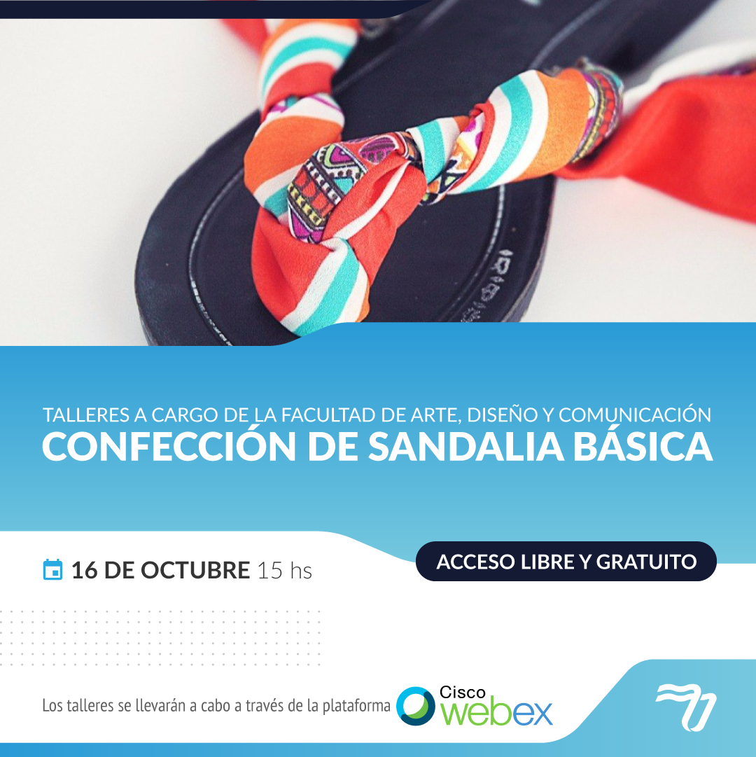 Te invitamos a participar del taller de Confección de sandalias básica organizados por la Facultad de Arte, Diseño y Comunicación. Inicia el viernes 16 de octubre a las 15 hs. ¡Sumate a