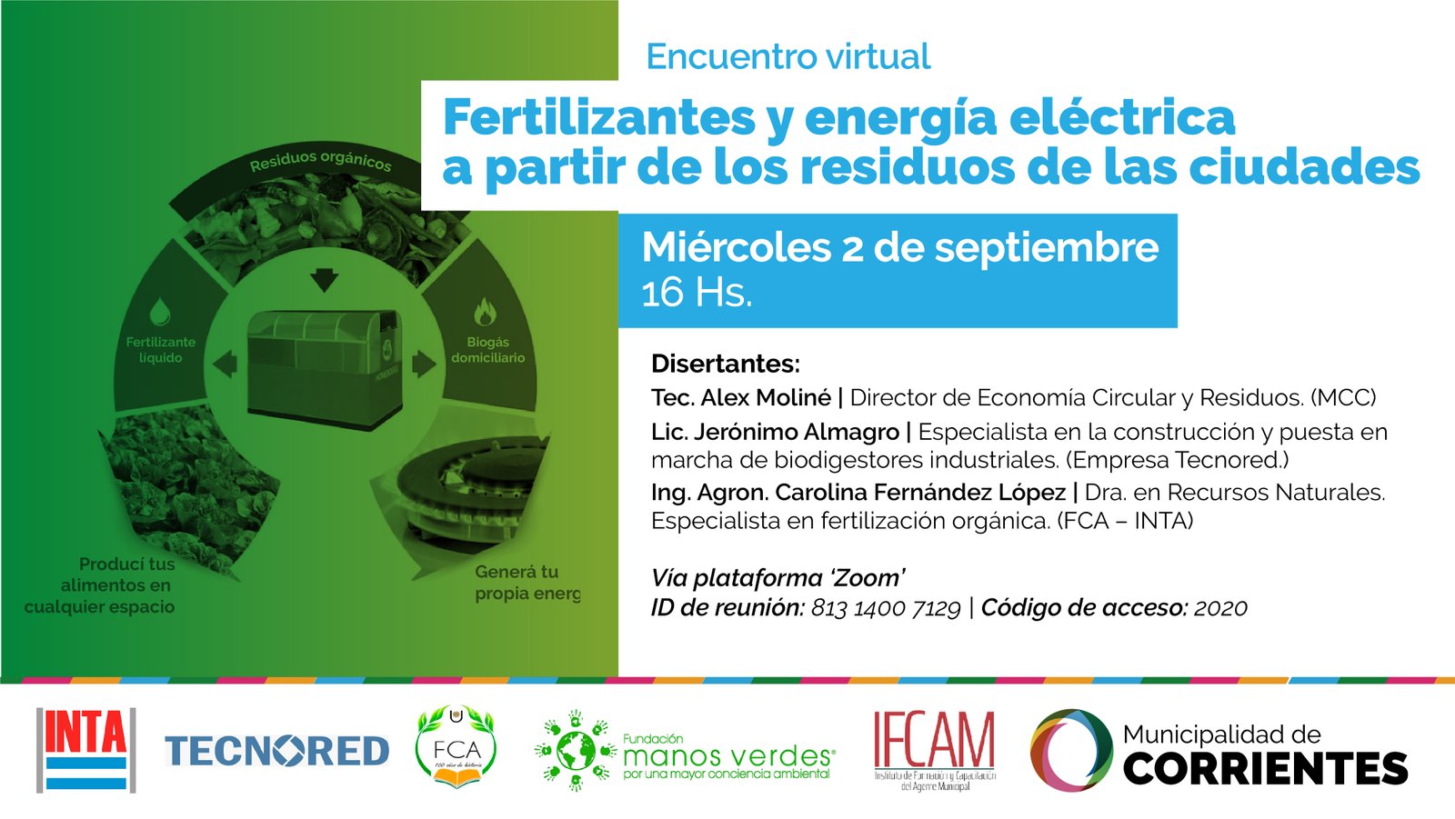 Realizaremos una charla virtual y gratuita acerca de cómo producir fertilizantes y energía eléctrica a partir de los residuos de los ciudadanos. Será este miércoles a las 16. Para participar, ingresá a la reunión de Zoom