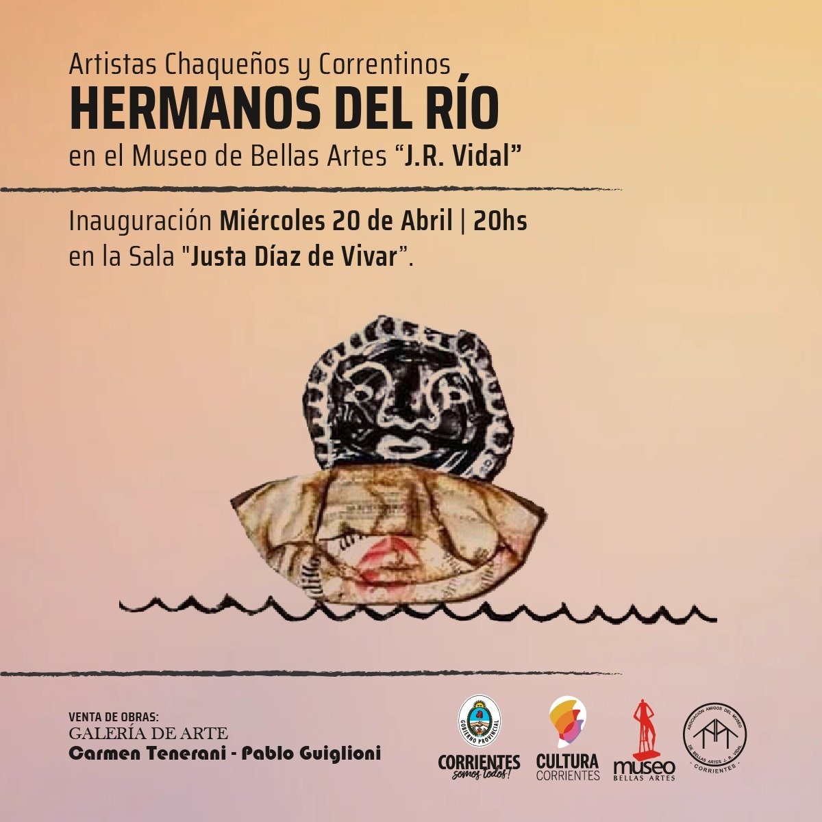 El Instituto de Cultura invita a la inauguración de la muestra HERMANOS DEL RÍO, exposición que reúne obras de artistas de Corrientes y Chaco, en la sala “Justa Díaz de Vivar” del Museo de Bellas Artes “Dr. Juan R. Vidal”. La misma se realizará este miércoles 20 de abril, a las 20 hs.