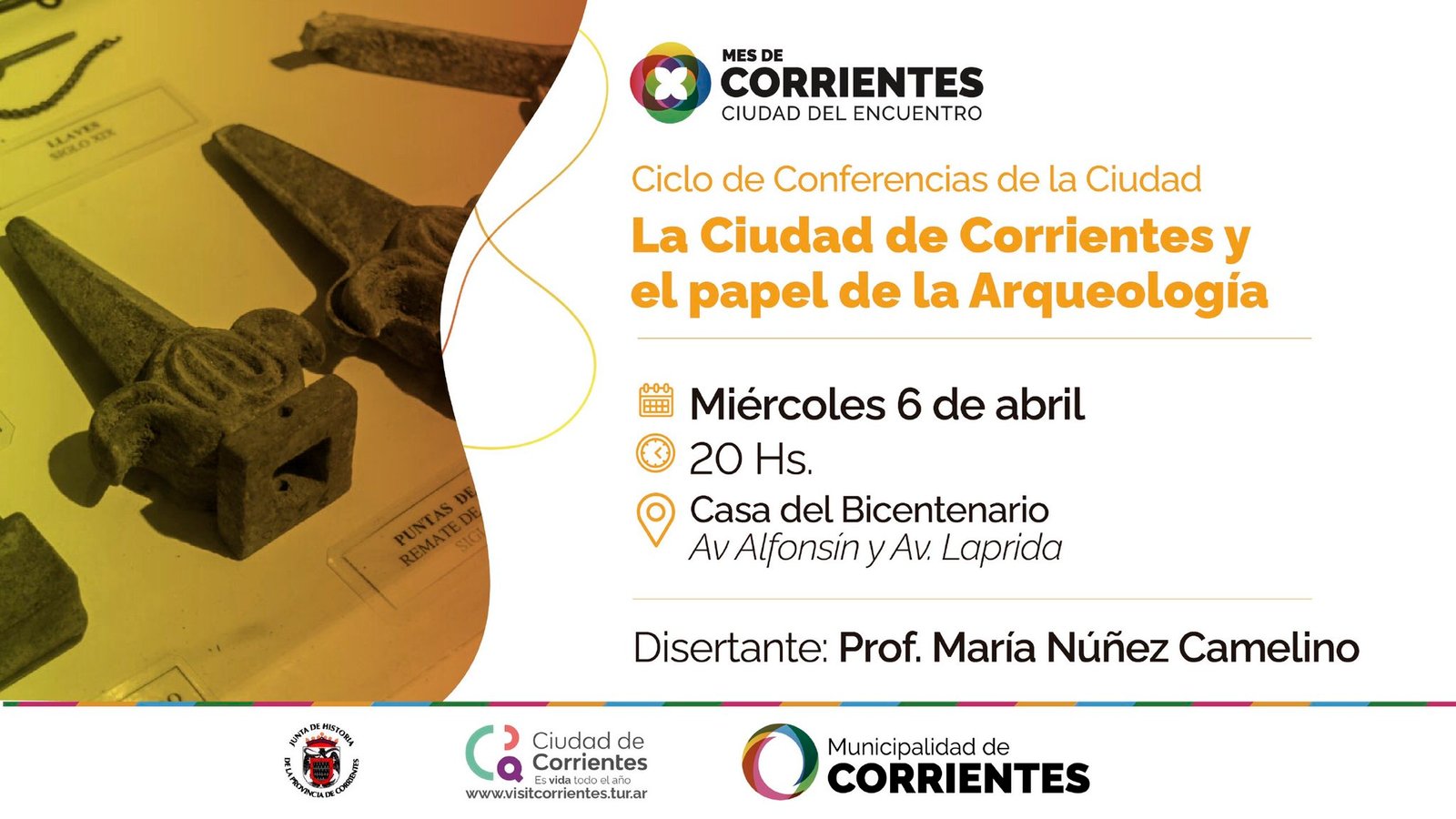 Llega una nueva edición del Ciclo de Conferencias de la Ciudad, dónde hablaremos sobre 'La ciudad de Corrientes y el papel de la Arqueología' Será este miércoles,