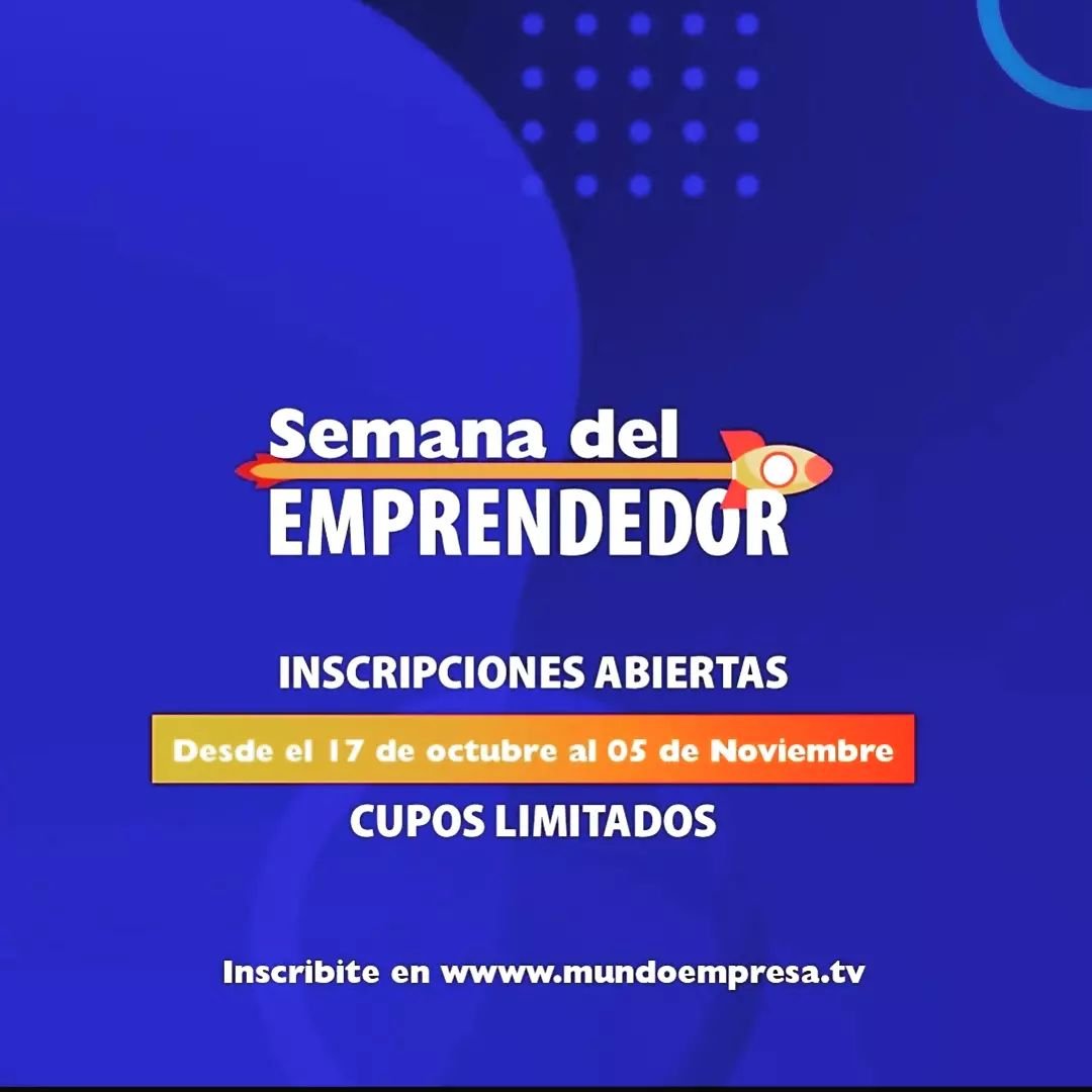 Desde el 7 al 11 de noviembre se realizará la semana del emprendedor, por lo tanto, durante una semana se llevarán a cabo diferentes actividades donde se presentarán capacitaciones para que los participantes puedan fortalecer su idea de negocio o emprendimiento en marcha, también habrá concursos, premios y muchas sorpresas más.