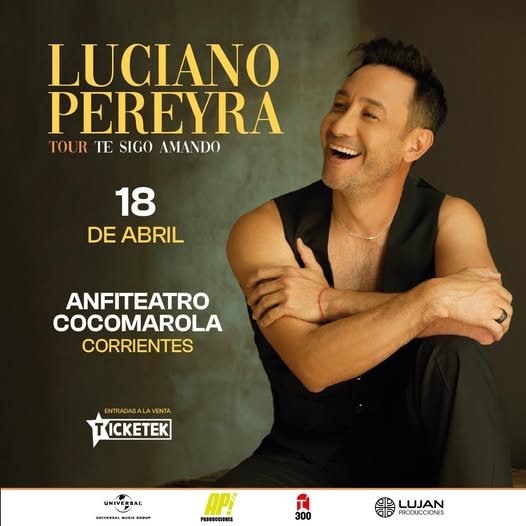 #TourTeSigoAmando en Corrientes 🫶🏼 🏟️ Anfiteatro Cocomarola 🗓️ 18 de abril 🎫 https://www.ticketek.com.ar/luciano.../anfiteatro-cocomarola Luciano Pereyra, uno de los artistas más queridos y consagrados de la música latina, regresa a Corrientes con un