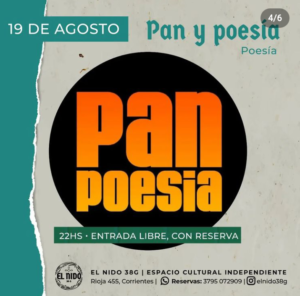 AGENDA CULTURAL DE AGOSTO EN #EL NIDO38G #Viernes 19 de Agosto, 22:00hs Pan y Poesía. Diez Poetas cuatro minutos cada uno y una oportunidad única