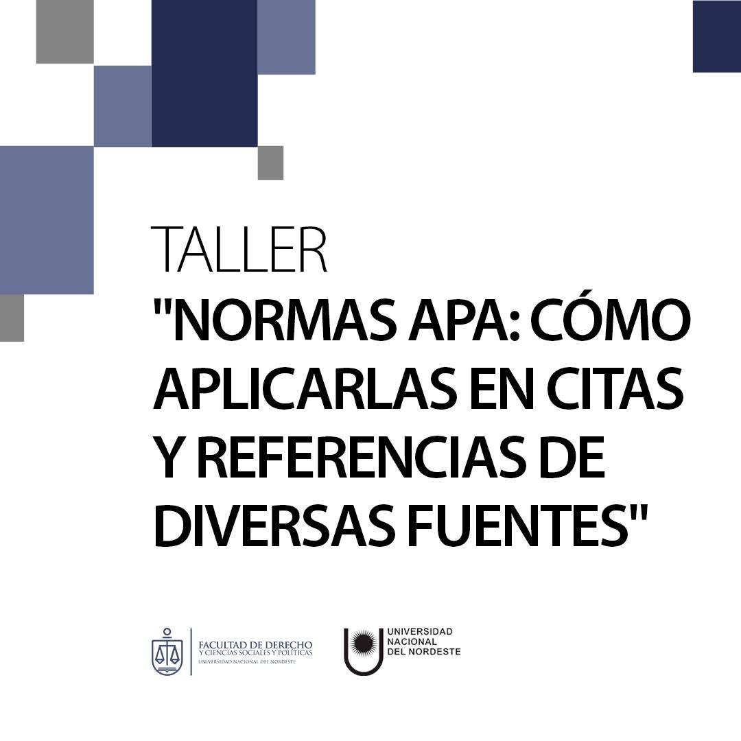 Atención Cursantes de Posgrado de la Facultad de Derecho de la @unneargentina Se viene el Taller “Normas APA: cómo aplicarlas en citas y referencias de diversas fuentes” en el marco del Programa Permanente de Elaboración de Tesis.